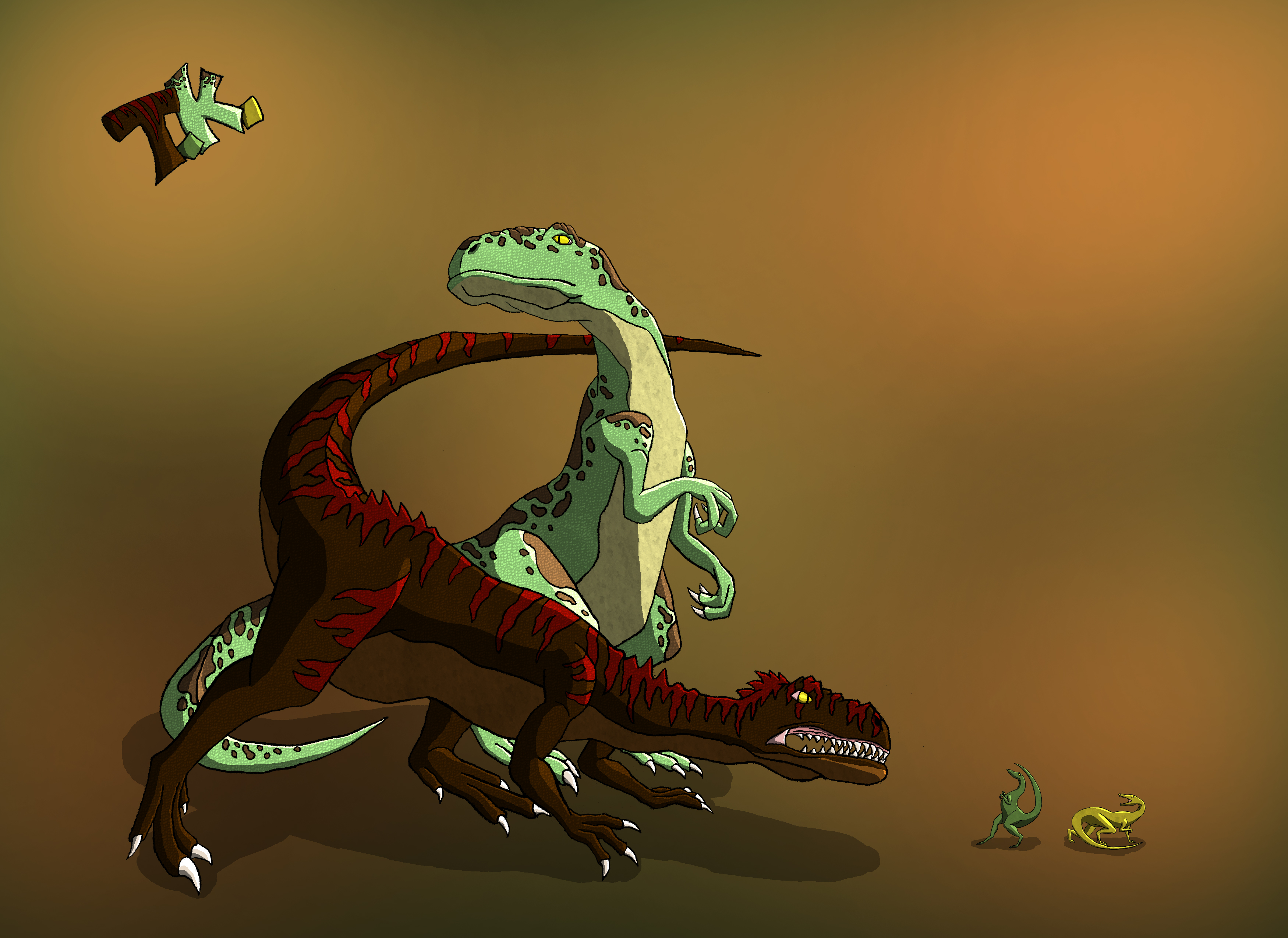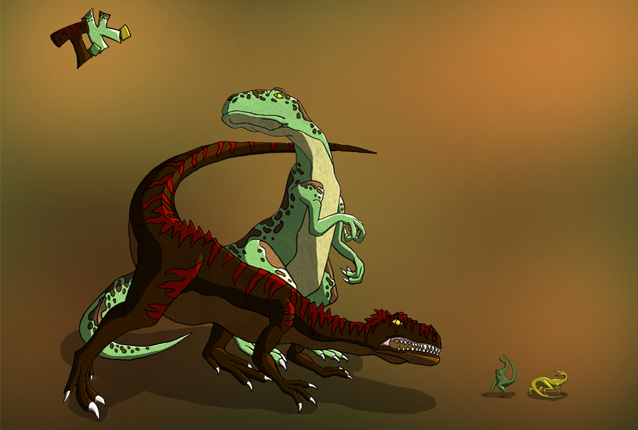 Therasus: The therasus is a common predator in all parts of Pangaea, and a dangerous one at that. These creatures range anywhere from 8.5 to 12 meters in length from head to tail. The people of Horagothien were the first to tame therasus and use them as mounted cavalry and personal transport. Many travellers prefer to ride therasus not only because it makes their trip safer, but a well trained one will defend its master from any and all threats. Its presence also wards off smaller predators like skyles (bottom right), making it much safer to camp at night. Tamed therasus are generally smaller than their wild counterparts. Only in the wilds can one find therasus that’s length exceeds 12 meters, and taming one of these beasts is about as easy as taming a forest fire. If you run into one, your best chance of survival is to have your therasus attack it while you run away.